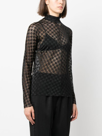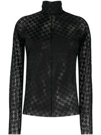 lace-detail long-sleeved top Highlights - Jet black - Stretch-design - Lace detailing - Semi-sheer construction - Roll neck - Long sleeves - Straight hem Made in Italy Composition Polyamide 93%, Spandex/Elastane 7% SIZE & FIT Model measurements Height 5 ft 10 in(1.77 m) Bust/Chest 31.1 in(79 cm) Hips 35.03 in(89 cm) Waist 23.62 in(60 cm) FittingInformation Designed for a close fit throughout Made from a lightweight stretch fabric, this piece offers elasticity and flexibility when worn This piece fits true to size – take your usual size Washing instructions Dry Clean Only