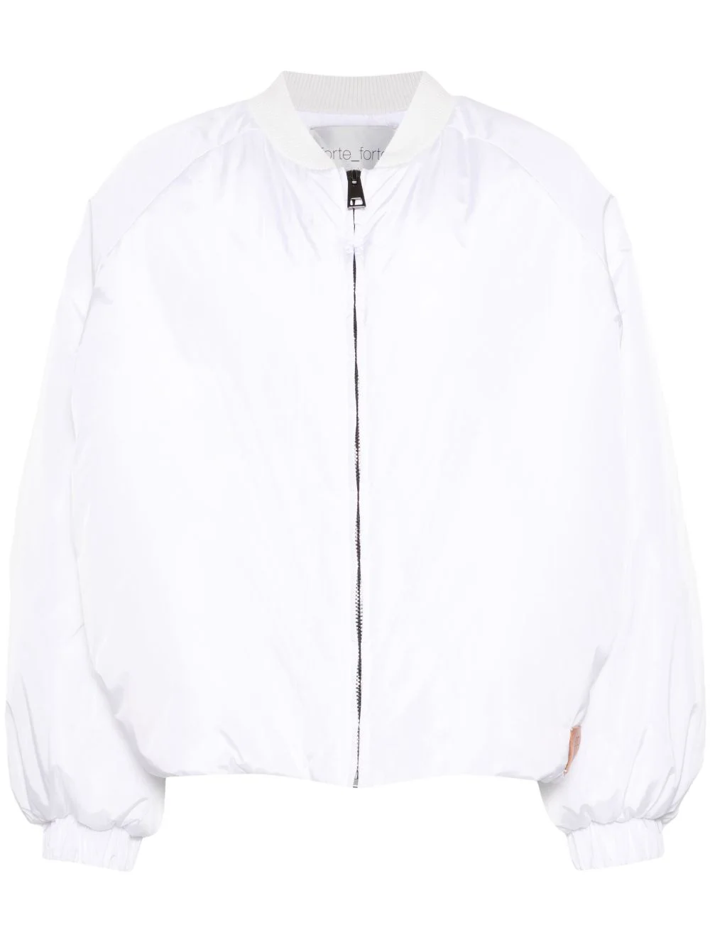 logo-patch padded bomber jacket Highlights - Textured finish - Padded design - Baseball collar - Long sleeves - Elasticated cuffs - Two side inset pockets - Logo patch to the side - Short side slits - Straight hem - Front zip fastening Made in Italy Composition Lining: Viscose 100% Outer: Polyamide 100% SIZE & FIT Model measurements Height 5 ft 10 in(1.78 m) Bust/Chest 33.07 in(84 cm) Hips 36.61 in(93 cm) Waist 24.8 in(63 cm) FittingInformation Designed to be unstructured, offering a loose fit throughout Made from a padded non-stretch fabric, giving it no natural elasticity This piece fits true to size – take your usual size Washing instructions Dry Clean Only