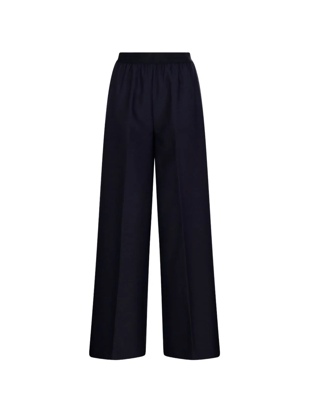 palazzo trousers Highlights - Navy blue - Wide leg - Elasticated waistband - Rear patch pocket Made In Italy Composition Fabric 100% Washing instructions Read Manufacturer Guidelines