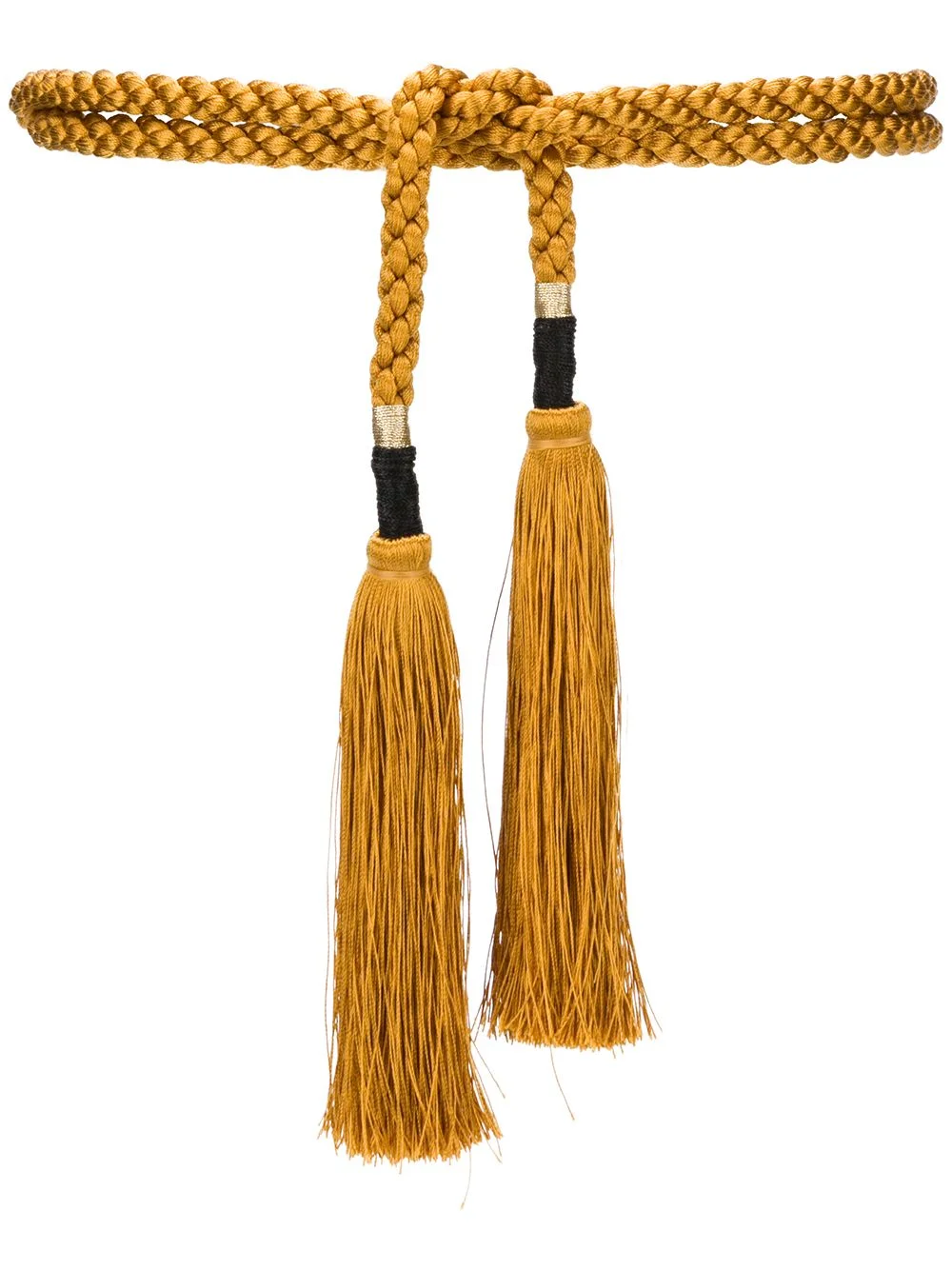 rope tie belt Gold-toned rope tie belt from Forte Forte featuring tassel detailing, an adjustable fit and a tie fastening. Made in Italy Composition Acetate 100% SIZE & FIT Measurement TOTAL LENGTH 70.86 in(180 cm) WIDTH 0.78 in(2 cm)