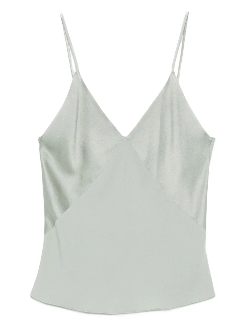 satin V-neck top Highlights - Green - Satin - V-neckline - Spaghetti straps - Straight hem - Panelled Made in Italy Composition Acetate 74%, Viscose 26% SIZE & FIT Model measurements Height 5 ft 10 in(1.78 m) Bust/Chest 33.46 in(85 cm) Hips 36.22 in(92 cm) Waist 23.22 in(59 cm) Washing instructions Dry Clean Only