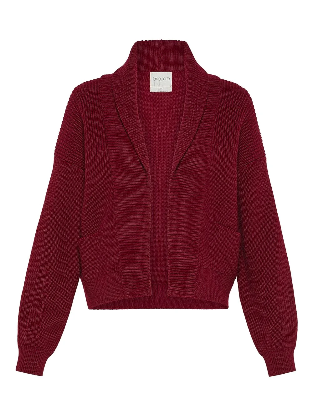 shawl-lapel pocket cardigan Highlights - Ruby red - Ribbed knit - Shawl lapel - Long sleeves - Front patch pockets - Open front Imported Composition Merino 100% Washing instructions Read Manufacturer Guidelines