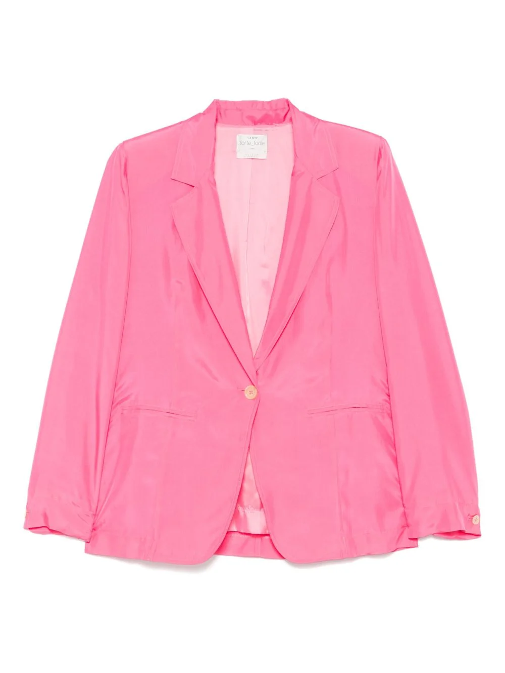 silk blazer Highlights - Hot pink - Front button fastening - Two side welt pockets - Buttoned cuffs - Full lining Made in Italy Composition Lining: Cupro 100% Outer: Silk 100% SIZE & FIT Model measurements Height 5 ft 9 in(1.76 m) Bust/Chest 31.88 in(81 cm) Hips 35.43 in(90 cm) Waist 24.8 in(63 cm) FittingInformation Designed for a relaxed fit, this piece allows for comfort and movement when worn The internal shoulder pads offer a structured shape Made from a lightweight non-stretch fabric Washing instructions Hand Wash