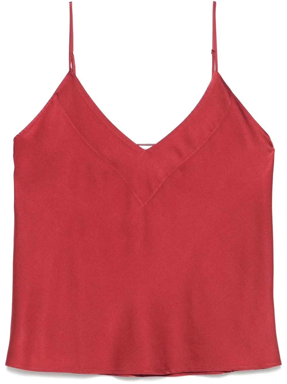 silk top Highlights - Tuscan red - Adjustable spaghetti straps - V-neck - Sleeveless Made in Italy Composition Silk 100% SIZE & FIT Model measurements Height 5 ft 10 in(1.78 m) Bust/Chest 33.46 in(85 cm) Hips 36.22 in(92 cm) Waist 23.22 in(59 cm) FittingInformation Designed for a relaxed fit, this piece allows for comfort and movement when worn The adjustable shoulder straps allow for a preferred fit when worn Made from a lightweight non-stretch fabric Washing instructions Dry Clean Only