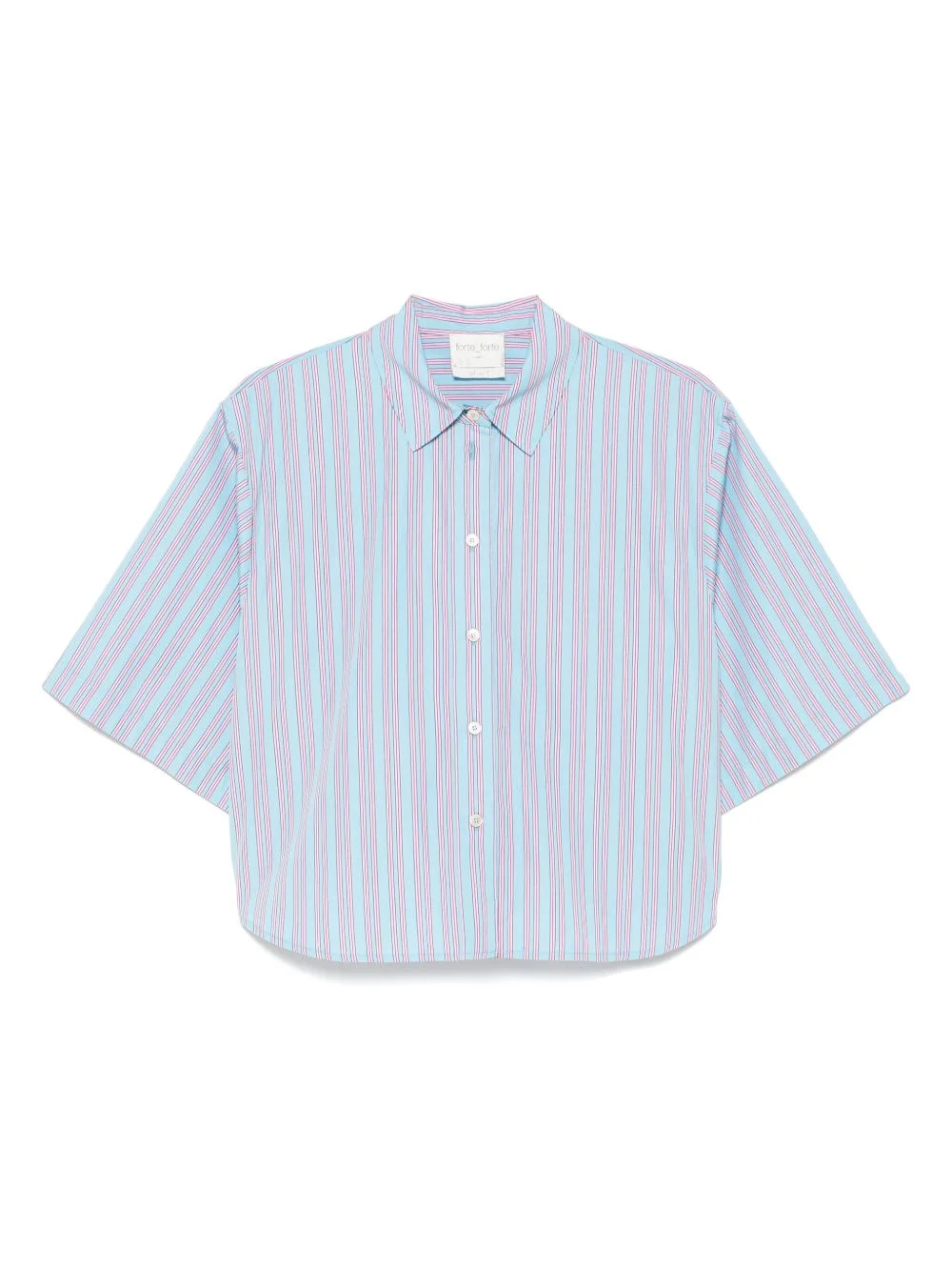 striped shirt Highlights - Aqua blue - Front button fastening - Classic collar - Short sleeves - Cropped Made in Italy Composition Cotton 100% Washing instructions Hand Wash