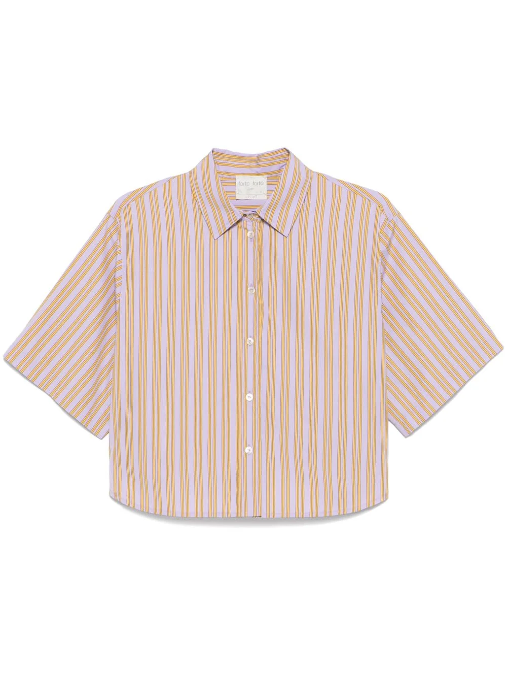striped shirt Highlights - Lilac - Front button fastening - Classic collar - Short sleeves Made in Italy Composition Cotton 100% SIZE & FIT Model measurements Height 5 ft 10 in(1.79 m) Bust/Chest 31.88 in(81 cm) Hips 35.43 in(90 cm) Waist 23.62 in(60 cm) FittingInformation Designed for a boxy fit, intended for a loose fit throughout Made from a midweight non-stretch fabric Washing instructions Machine Wash