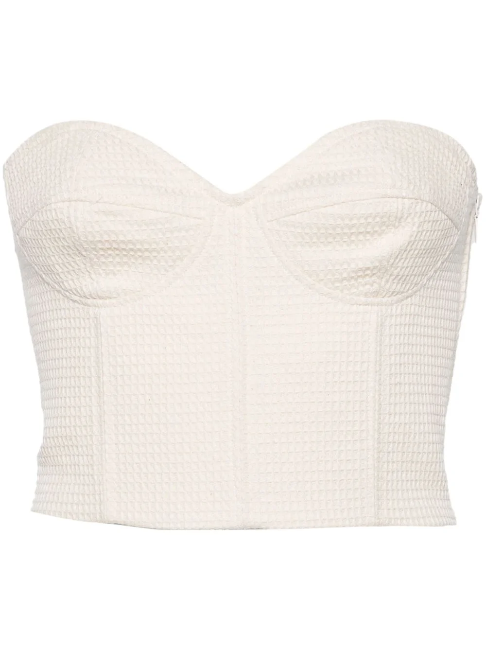 sweetheart-neck cotton crop top Highlights - Ecru - Cotton - Waffle knit - Sweetheart neck - Boned bodice - Concealed side zip fastening - Spaghetti straps - Straight hem - Cropped Made in Italy Composition Cotton 100% SIZE & FIT Model measurements Height 5 ft 10 in(1.78 m) Bust/Chest 31.49 in(80 cm) Hips 37 in(94 cm) Waist 23.62 in(60 cm) FittingInformation Designed for a close fit throughout Made from a midweight non-stretch fabric This piece fits true to size – take your usual size Washing instructions Dry Clean Only