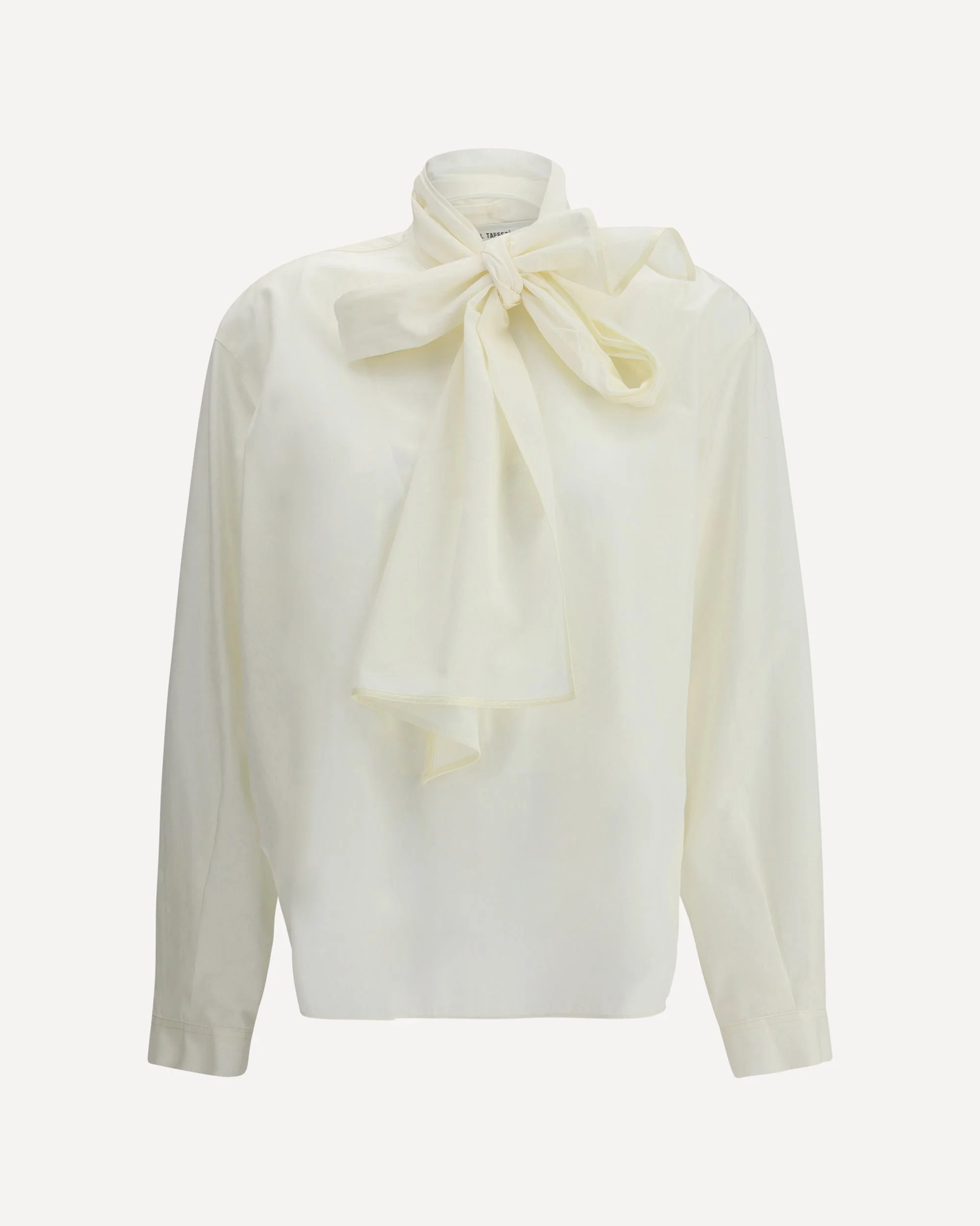The Taffeta Shirt with removable bow by Forte Forte embodies light, versatile femininity through its generous volumes, designed to evoke an over-shirt styling. The keyhole neckline with button is enhanced by a tie detail, to be knotted for a playful and adjustable touch. The subtly lustrous fabric finish meets the asymmetric hem, conceived to be worn untucked, striking a balance between elegance and ease. DETAILS - Sku: 14400MYSHIRT_F48M0010 - Season: AW25 - Fit: Oversize - Composition: GENERAL 52% Polyester 48% Cotton - MADE IN ITALY