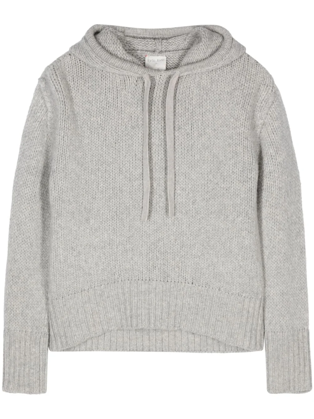 wool knitted hoodie Highlights - Light grey - Virgin wool - Knitted construction - Drawstring hood - Long sleeves - Ribbed cuffs and hem Made in Italy Composition Virgin Wool 100% Washing instructions Hand Wash