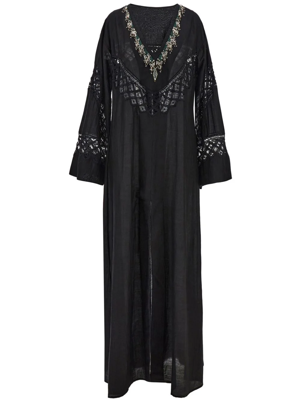 Alice maxi dress Highlights - Black - V-neck - Long wide sleeves - Bead detailing - Lace detailing Imported Composition Cotton 70%, Silk 30% Washing instructions Read Manufacturer Guidelines