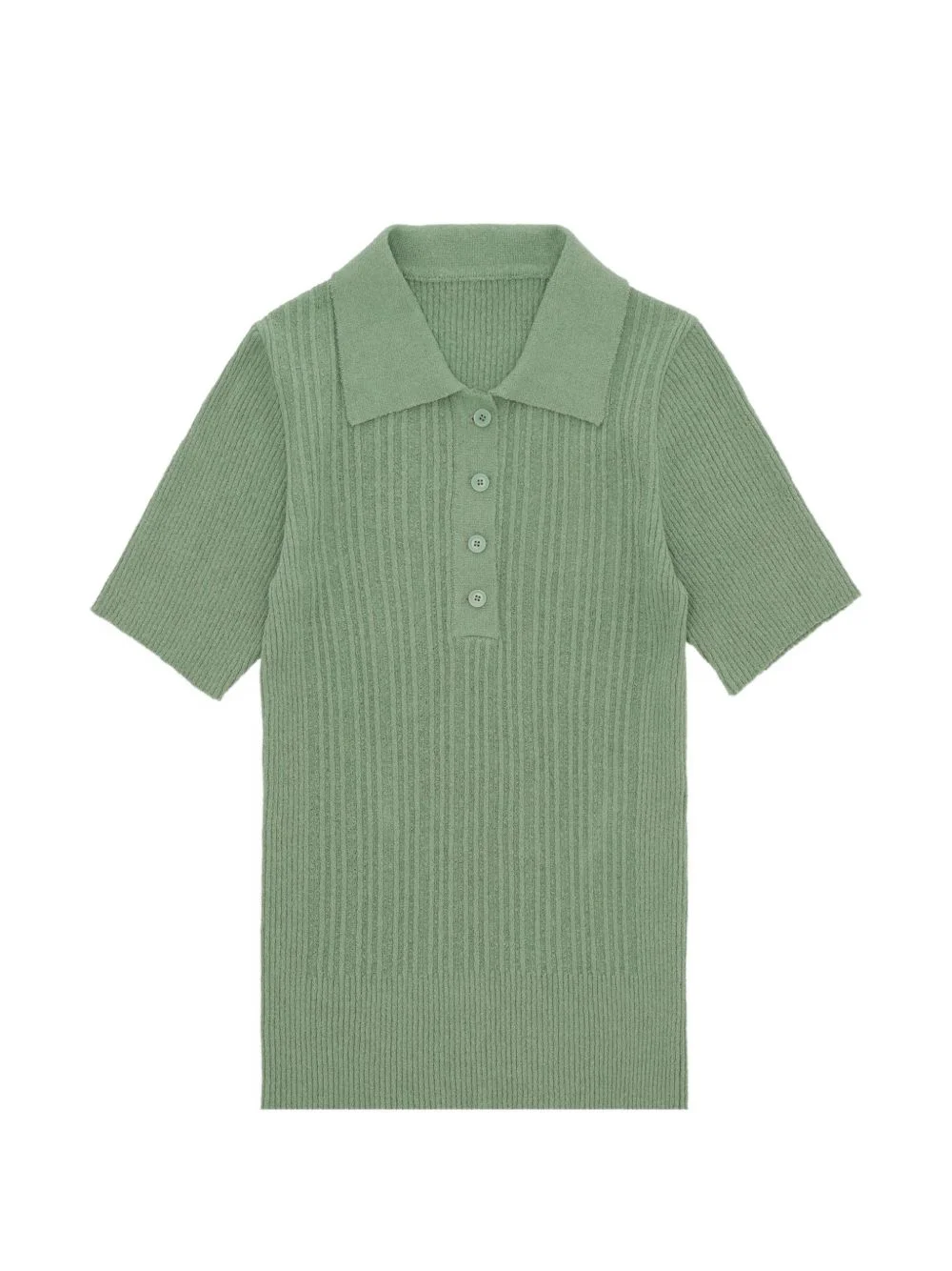 Camille polo top Highlights - Light green - Shirt collar - Button placket - Ribbed texture - Short sleeves - Regular fit Made in Italy Composition Cotton 65%, Polyamide 35% Washing instructions Read Manufacturer Guidelines