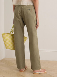 Rope-trimmed Coated-cotton Straight-leg Pants