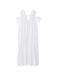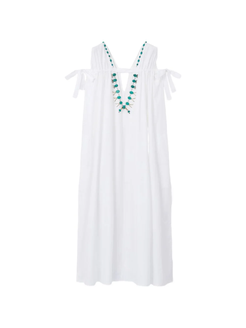 turquoise stone V-neck dress Highlights - Off-white - V-neck - Turquoise stone embellishment - Side slits - Tie detail at shoulders - Open back Made in Italy Composition Cotton 100% Washing instructions Read Manufacturer Guidelines