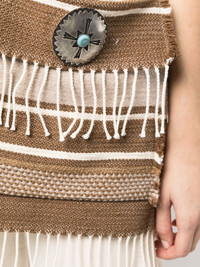vertical-stripe knitted gilet brown cotton-wool blend knitted construction sleeveless two front pouch pockets decorative button detailing open front fringe detailing frayed hem Made in Italy Composition Cotton 80%, Wool 20% SIZE & FIT Model measurements Height 5 ft 11 in(1.8 m) Bust/Chest 31.49 in(80 cm) Hips 36.22 in(92 cm) Waist 25.59 in(65 cm) Measurement HIPS 45.66 in(116 cm) LENGTH 30.31 in(77 cm) WAIST 42.51 in(108 cm) BUST 41.73 in(106 cm) Washing instructions Dry Clean Only