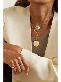 Foundrae's necklace is so thoughtfully crafted - it's been made locally in the label's New York City studio from 18-karat recycled gold. The serrated coin pendant is detailed with star, pyramid and diamond-embellished arrow motifs that represent dreams becoming a reality. Wear yours as an everyday signature. This product was Locally Made and Reduces Waste. Find out more about NET SUSTAIN here.