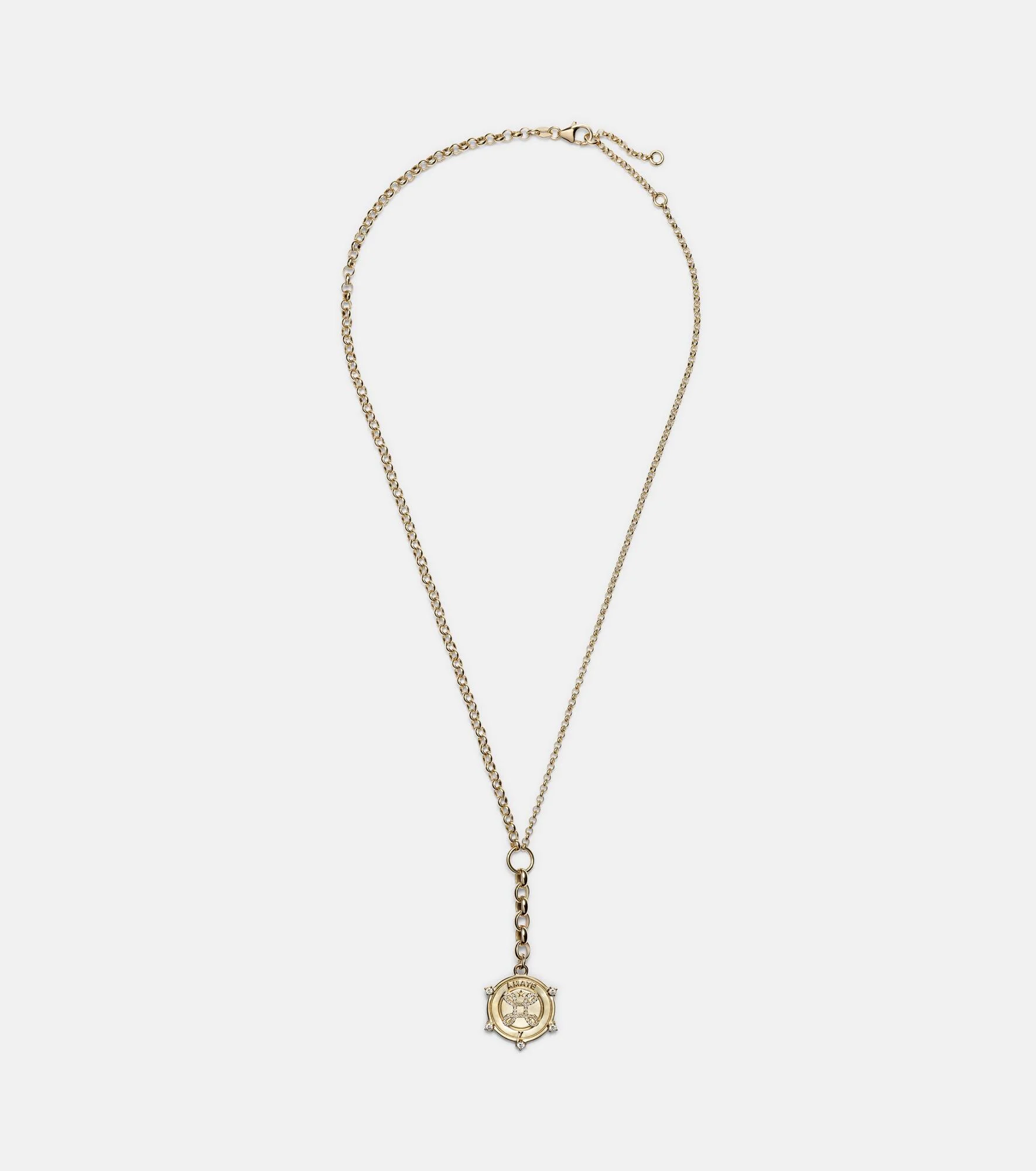 Product Details - Material: 18kt yellow gold (750/1000) - Made in the USA - Stone I: diamond, VS1 clarity grade, round-cut, prong setting - Color: gold - Stone I carat weight (ct): 0.337 - Closure: lobster-clasp fastening - Item number: P00966004 Size & Fit - Adjustable length - Min. width 2mm-0.1" - Max. width 3mm-0.1" - Pendant length 57mm-2.25" - Pendant width 20mm-0.8" - Min. length 45,5cm-18" - Max. length 51cm-20"
