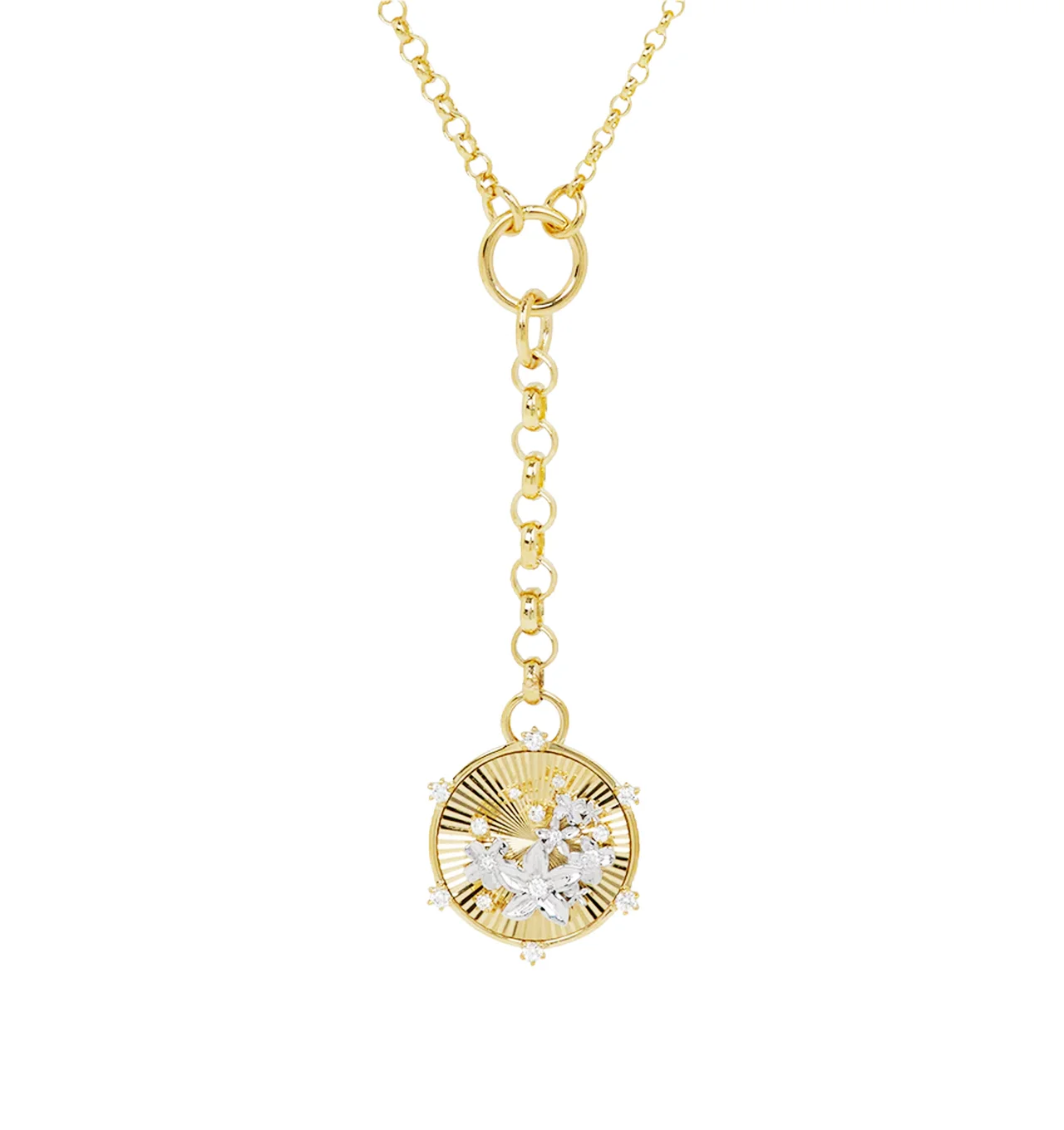 FOUNDRAE Blossoms Small Mixed Belcher Necklace in Mixed Gold with Diamonds featuring 18k gold. Diamond Weight: 0.145 ct. Medallion measures 15 mm in diameter. Necklace measures 18" in length. Small Belcher chain necklace Gauge 2mm with 15 mm Medallion. Hirshleifers offers a range of initial pieces from this collection in-store. For personal consultation and detailed information about jewelry, please contact our dedicated stylist team at personalshopping@hirshleifers.com. DESIGNER STYLE ID: AN0001-BL0-YG-DI-18 COLOR: YG