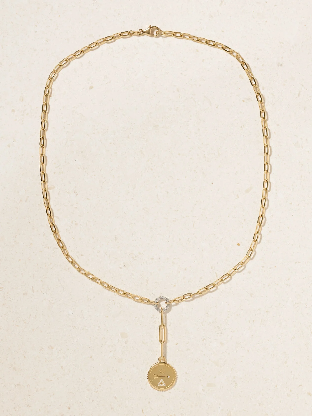 The 'Dream' charm strung on FoundRae's necklace represents "the journey of self-discovery, transformation & ascension." It's handmade from polished 18-karatyellow and white gold and inlaid with a wash of shimmering diamonds. Layer yours with other pieces from the brand.