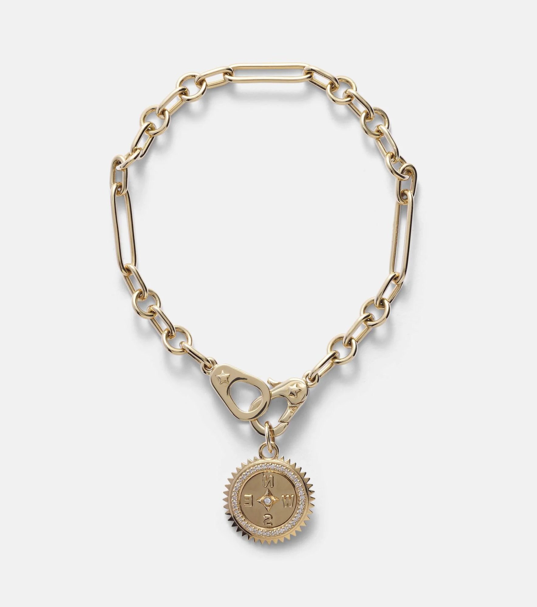 Product Details - Material: 18kt yellow gold (750/1000) - Made in the USA - Stone I: diamonds, round-cut, prong setting, VS1 clarity grade - Color: gold - Stone I carat total weight (ctw): 0.136 - Item number: P00966021 Size & Fit - Length when open 18,5cm-7.5" - Max. width 5mm-0.2" - Pendant length 23mm-0.9" - Pendant width 16mm-0.65"