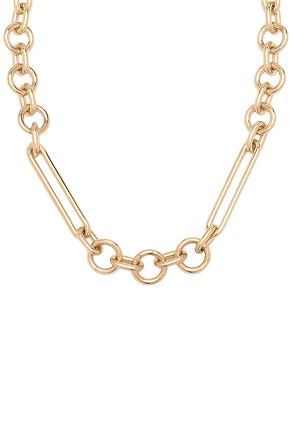 DETAILS AND INSIGHT Foundrae mixed oversized clip chain with 3 seamless annex links which camouflage into the body of the chain, open and close to allow for any charms or medallions to be added. Can be worn with or without a medallion. Medallions sold separately. 18" Chain Length 18K Yellow Gold Style OE2.18