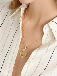 FoundRae's necklace features a horseshoe pendant - a symbol of luck and power, inspired by the strength of iron forged in fire. Crafted from 18-karat gold, it's adorned with sparkling diamonds and suspended from the brand's signature ‘Fine Mixed Clip' chain.