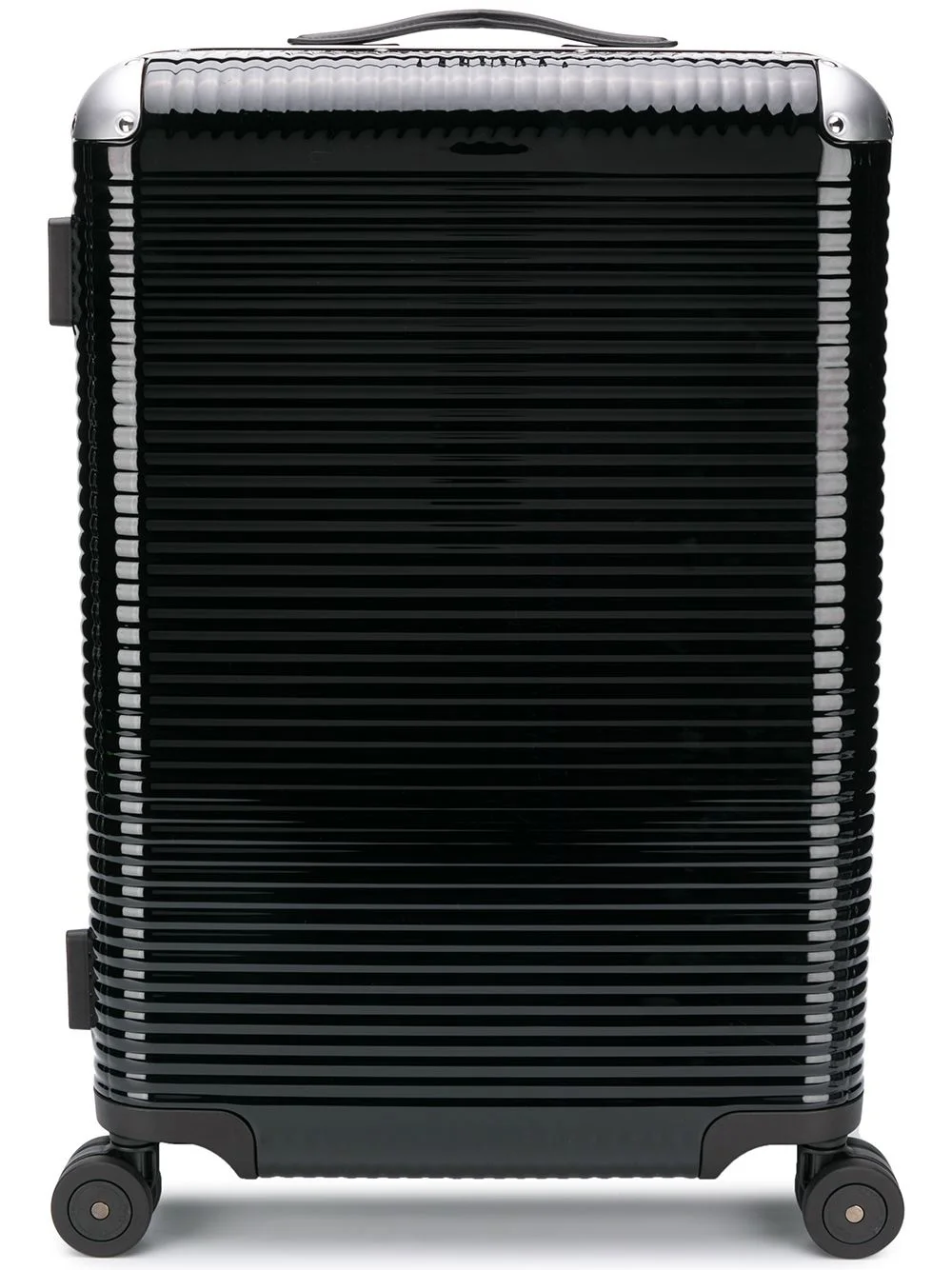 Bank Light Spinner 68 luggage trolley Highlights - Black textured luggage trolley from fpm – fabbrica pelletterie milano featuring a top handle, an all around zip fastening, a rectangular body and rolling wheels at base. Imported Composition Outer: Polycarbonite 100% SIZE & FIT Measurement DEPTH 10.82 in(27.5 cm) HANDLE 0.78 in(2 cm) HEIGHT 26.77 in(68 cm) WIDTH 17.71 in(45 cm)