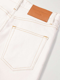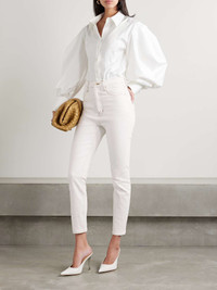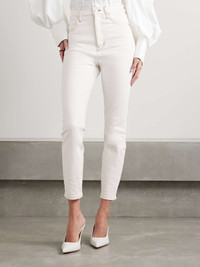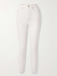 EDITORS'NOTES FRAME's ‘The Taper’ jeans are part of a capsule collection with Venezuelan designer Carolina Herrera. They're cut for a skinny fit from white denim and have contrasting topstitching and a high-rise waist. SIZE & FIT - Fits true to size, take your normal size - High-rise, cut for a skinny fit - Mid-weight, slightly stretchy denim - Size 26 jeans have an inside leg of 27.3"/ 69.5cm - Model is 180cm/ 5'11" and is wearing a size 26 DETAILS & CARE - White denim - Button and concealed zip fastening at front - 79% cotton, 20% recycled cotton, 1% elastane