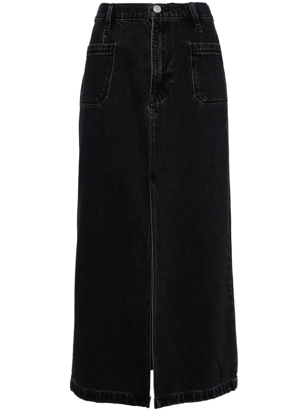 La Bardot denim maxi skirt Highlights - Black - Cotton - Denim - Dark wash - High-rise - Front button and zip fastening - Belt loops - Two front patch pockets - Two rear patch pockets - Front slit - Ankle-length - Straight hem Imported Composition Cotton 100%