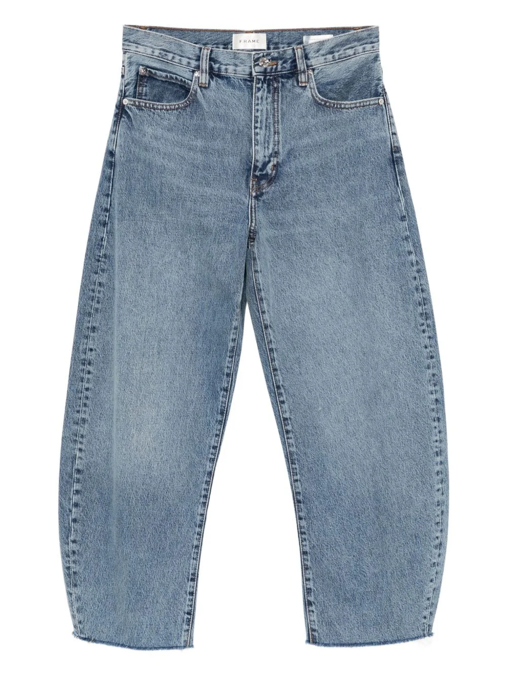 Bubble cropped jeans Highlights - Indigo blue - Front button and zip fastening - Classic five pockets - Belt loops - Raw-cut hem Imported Composition Regenerative Cotton 100% SIZE & FIT Model measurements Height 5 ft 10 in(1.77 m) Bust/Chest 30.31 in(77 cm) Hips 34.25 in(87 cm) Waist 25.19 in(64 cm) FittingInformation Designed for a tapered fit, these jeans allow a close fit at the waist and a loose unrestricted fit over the leg with a closer fit towards the ankle Sturdy and hard-wearing, this denim piece offers no stretch Washing instructions Machine Wash