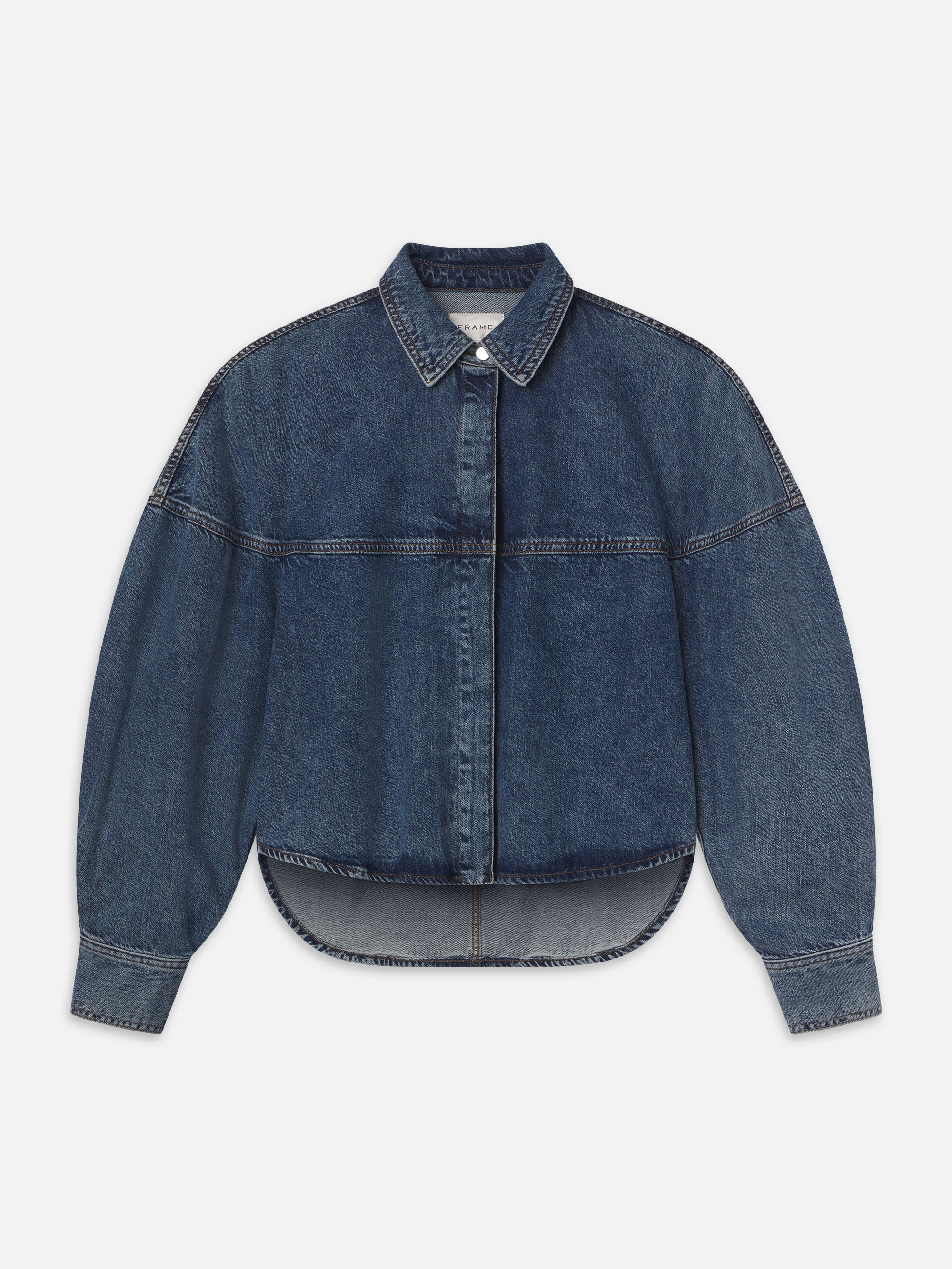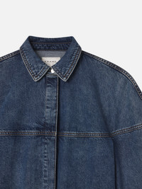 The bestselling Bubble Jean reimagined in shirt form. Cut from a lightweight chambray in a cropped, oversized silhouette and finished with a curved high-low hem and concealed placket. Materials & Care Dry Clean Only 30% Lyocell/28% Organic Cotton/21% Pre Consumer Recycled Cotton/21% Post Consumer Recycled Cotton 21.0" Long From Shoulder WP25DWTB06-GUAR