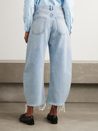 The Bubble Crop frayed high-rise barrel-leg jeans Light denim