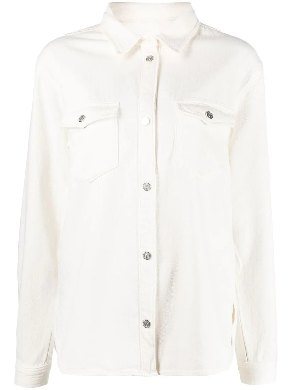 button-up shirt white cotton classic collar front button fastening long sleeves two chest patch pockets Imported Composition Cotton 100% SIZE & FIT Model measurements Height 5 ft 8 in(1.73 m) Bust/Chest 33.07 in(84 cm) Hips 35.03 in(89 cm) Waist 24.8 in(63 cm) FittingInformation This piece fits true to size. We recommend you get your regular size Cut for a loose fit Made with a mid-weight non-stretch fabric