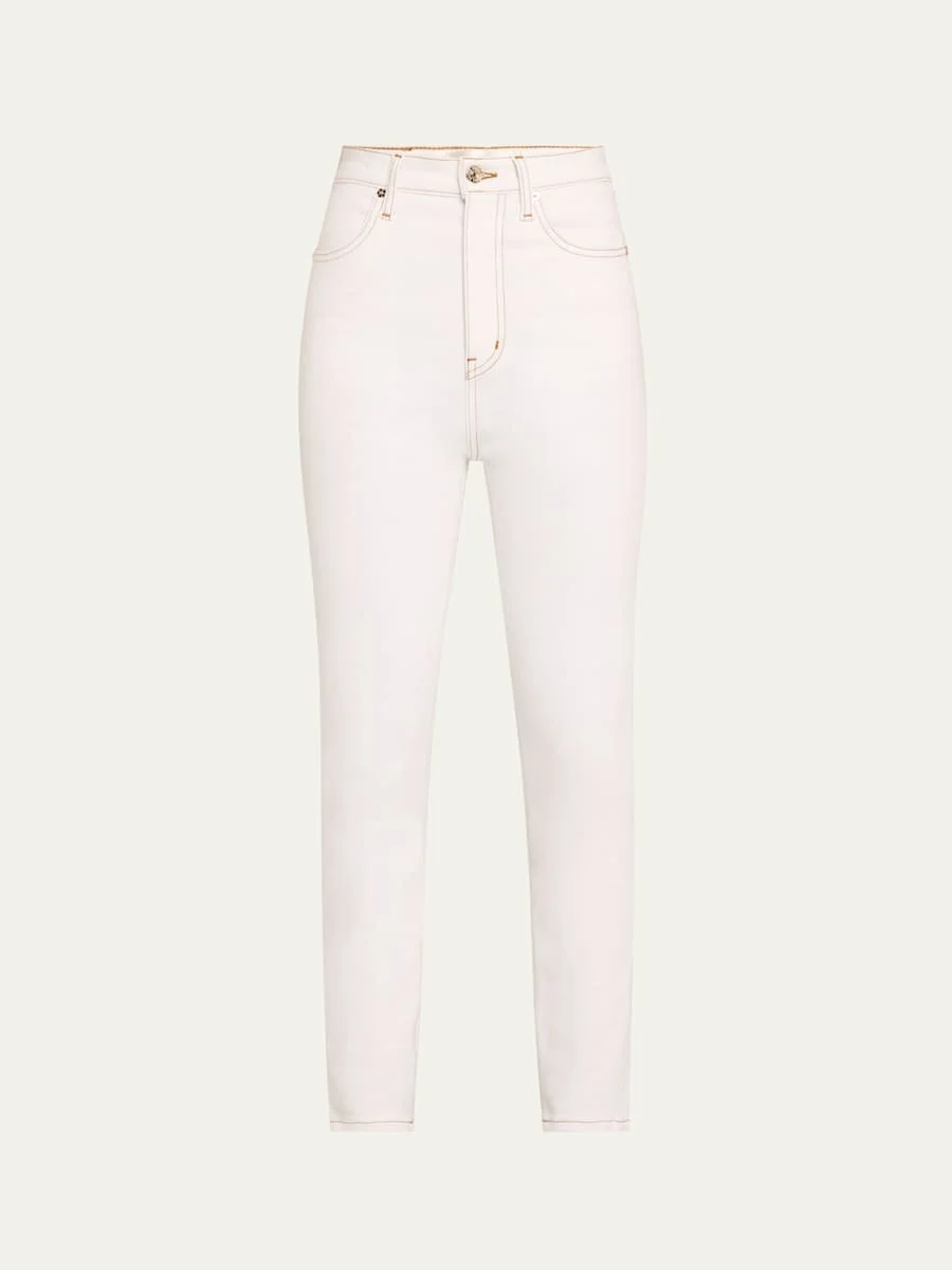 CH x FRAME "The Taper" jeans in colored denim Approx. 27.5" inseam High rise Four-pocket style Straight legs Cropped length Button/zip fly; belt loops Cotton/elastane Machine wash cold, tumble dry Imported Model is 5'10"/177cm. Online Inquiries: BGS21_T64MC| Store Inquiries: #4901342