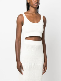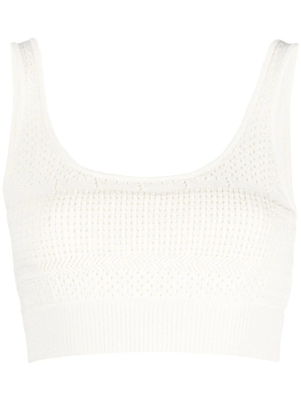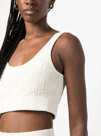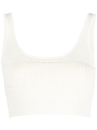 crochet-knit cropped top Highlights - Off-white - Knitted construction - Crochet knit - Perforated detailing - Scoop neck - Sleeveless - Straight hem - Cropped Imported Composition Outer: Rayon 62%, Nylon 38% Lining: Viscose 100% SIZE & FIT Model measurements Height 5 ft 10 in(1.77 m) Bust/Chest 29.92 in(76 cm) Hips 34.25 in(87 cm) Waist 23.62 in(60 cm) FittingInformation Designed for a close fit throughout The ribbed hem offers a close, comfortable fit Made with a midweight knit, this piece offers some stretch This piece fits true to size – take your usual size