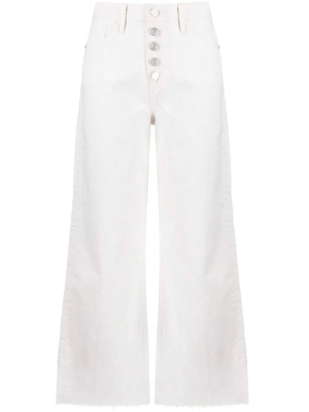 cropped wide-leg jeans white stretch-cotton high waist button fly fastening belt loops classic five pockets raw-cut hem wide leg cropped leg Imported Composition Cotton 79%, Recycled Cotton 20%, Elastane 1% SIZE & FIT Model measurements Height 5 ft 10 in(1.77 m) Bust/Chest 32.67 in(83 cm) Hips 35.43 in(90 cm) Waist 23.62 in(60 cm) FittingInformation This piece fits true to size. We recommend you get your regular size Designed to be fitted at the waist and hips, loose over the leg Made with a mid-weight stretch fabric