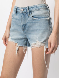 distressed denim shorts pale blue cotton distressed effect front button fastening two diagonal pockets to the sides two rear patch pockets Imported Composition Cotton 100% SIZE & FIT Model measurements Height 5 ft 9 in(1.76 m) Bust/Chest 29.13 in(74 cm) Hips 33.07 in(84 cm) Waist 22.83 in(58 cm) FittingInformation This piece fits true to size. We recommend you get your regular size Cut for a slim fit Made with a mid-weight fabric Washing instructions Machine Wash