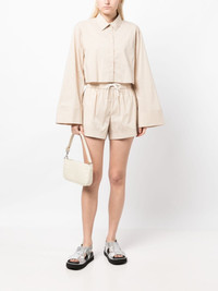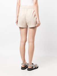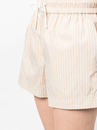 drawstring-waist thigh-length shorts Highlights - Sand beige - Cotton blend - Stretch-design - Stripe print - Embroidered logo to the front - Elasticated drawstring waistband - Two side slit pockets - Thigh-length Made in United Kingdom Composition Cotton 72%, Nylon 26%, Spandex/Elastane 2% SIZE & FIT Model measurements Height 5 ft 9 in(1.76 m) Bust/Chest 31.1 in(79 cm) Hips 35.03 in(89 cm) Waist 24.4 in(62 cm) FittingInformation Designed for a loose fit, offering comfort and movement when worn Adjust this piece’s waistband to your preference using the drawstring Made from a midweight non-stretch fabric This piece fits true to size – take your usual size