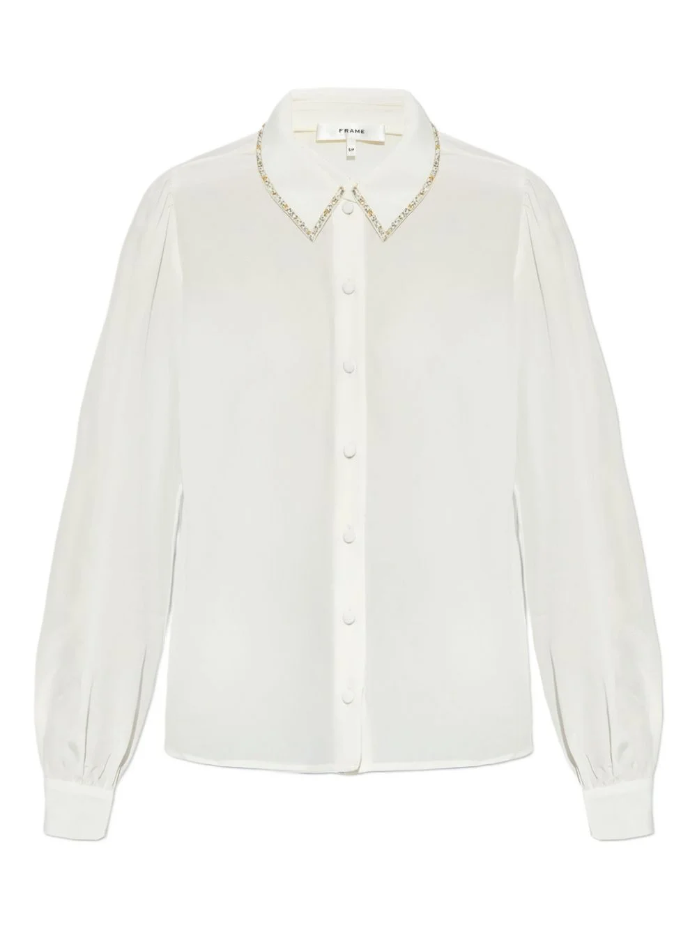 embellished collared blouse Highlights - Neutrals - Embellished collar - Button fastening - Long sleeves - Buttoned cuffs Imported Composition Silk 100% Washing instructions Read Manufacturer Guidelines