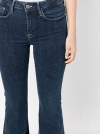 flared organic cotton jeans Highlights - Blue - Organic cotton blend - Belt loops - Front button and zip fastening - Classic five pockets - Flared Imported Composition Organic Cotton 63%, Cotton 27%, Recycled Polyester 5%, Elastane 5% Washing instructions Machine Wash