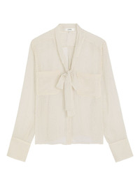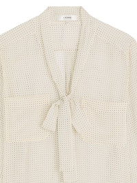 tie-neck polka-dot top Highlights - Off-white - Polka-dot pattern - Front tie fastening - Long sleeves - Buttoned cuffs - Two chest patch pockets Imported Composition Silk 100% Washing instructions Read Manufacturer Guidelines