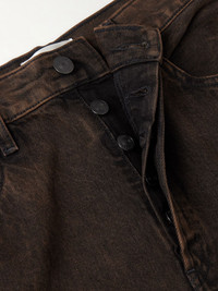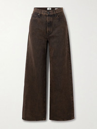 FRAME's 'The Collegiate' jeans have a wide-leg shape that gives them a cool, '70s feel. Designed to sit high on the waist, they're made from rigid denim in a dark-brown wash called 'Nightmoth'. Size & Fit - Fits true to size, take your normal size - High-rise, cut for a wide-leg fit - Mid-weight, non-stretchy denim - Size 26 jeans have an inside leg of 31.1"/ 79cm - Model is 175cm/ 5'9 and is wearing a size 26 Details & Care - Dark-brown denim - Partially concealed button fastenings along front - 100% cotton - Partially lined - Machine wash - Designer wash: Nightmoth