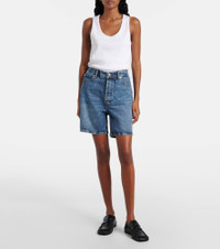 Frame creates iconic denim designs using fair manufacturing practices and sustainably sourced materials. These denim shorts feature a high-rise style and are cut to a straight silhouette. Product Details - Material: 100% cotton - Care instructions: machine wash at 30 degrees - Made in Turkey - Designer color name: September - Item color: blue - Item number: P01055545 Size & Fit - True to size - Non-stretchy fabric - Straight leg - High-rise - The model seen in the picture is 178cm-5'10" and wearing a size 26