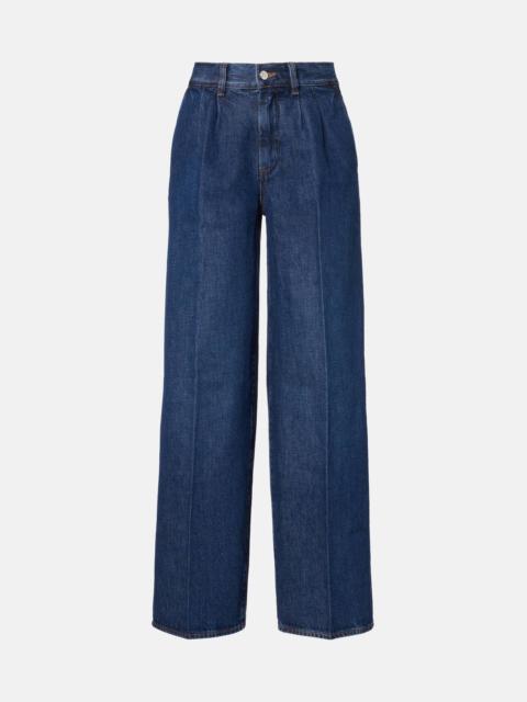 Frame creates iconic designs using fair manufacturing practices and sustainably sourced materials. These wide-leg jeans are tailored to a high-rise silhouette and feature refined front creases. Product Details - Material: 100% cotton - Care instructions: machine wash at 30 degrees - Made in Tunisia - Designer color name: Kristoff - Item color: blue - Hardware color: silver - Closure: zip and button fastening - Belt loops - Pockets: slant pockets, back pockets - Double pleat - Item number: P01099096 Size & Fit - True to size - Non-stretchy fabric - Wide-leg - High-rise - The model seen in the picture is 178cm-5'10" and wearing a size 26