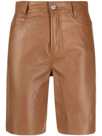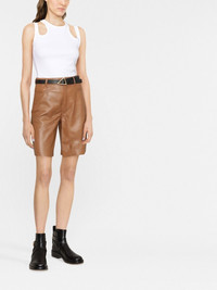 high-waisted leather shorts Imported Composition Lamb Skin 100% SIZE & FIT Model measurements Height 5 ft 10 in(1.77 m) Bust/Chest 32.28 in(82 cm) Hips 34.64 in(88 cm) Waist 24.4 in(62 cm) FittingInformation This piece fits true to size. We recommend you get your regular size Designed to be fitted at the waist and hips, loose over the leg Made with a mid-weight fabric Washing instructions Specialist Cleaning
