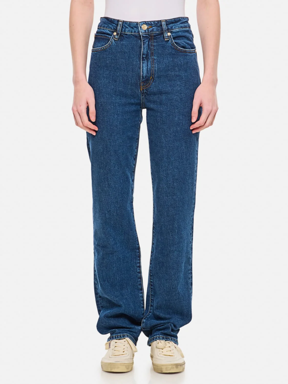 DESCRIPTION - Style: Urban-street - Logo: Back - Pockets: 5-pocket - Waist: undefined - Bottom: With straight hemline - Closure: With button and zip - Materials: Cotton denim - Pattern: Plain-colored DETAILS AND CARE Composition 99% CO 1% EA SIZE AND FIT Sizes not available Size and fit Straight Designer code: WP25DPA001 WRTN Giglio Code: H17289 Designer: Frame Collection: Frame Woman Category: Clothing Frame