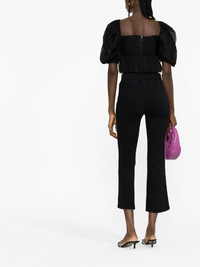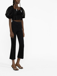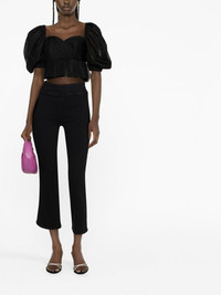flared denim trousers Renowned for its denim collections, FRAME introduces a contemporary take on classic flares. Cut in denim, these trousers boast a sleek silhouette and cropped leg. Imported Composition Cotton 92%, Elastane 4%, Polyester 4% SIZE & FIT Model measurements Height 5 ft 10 in(1.79 m) Bust/Chest 31.1 in(79 cm) Hips 35.03 in(89 cm) Waist 24.01 in(61 cm) Washing instructions Dry Clean Only