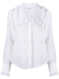 lace-detailed concealed shirt white lace detailing classic collar concealed front fastening fitted-cuff sleeves asymmetric hem Imported Composition Ramie 100%, Polyester 100% SIZE & FIT Model measurements Height 5 ft 11 in(1.8 m) Bust/Chest 31.1 in(79 cm) Hips 34.25 in(87 cm) Waist 22.83 in(58 cm) FittingInformation This piece fits true to size. We recommend you get your regular size Cut for a loose fit Made with a mid-weight non-stretch fabric Washing instructions Dry Clean Only