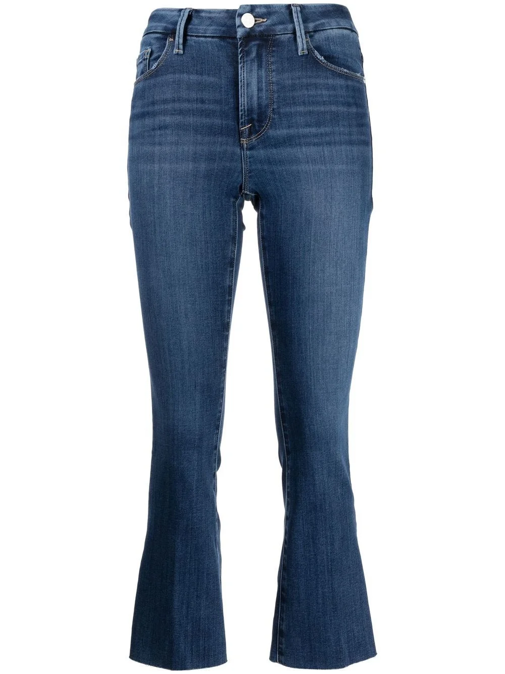 Le Crop mid-rise cropped jeans indigo blue cotton-lyocell blend dark wash high waist cropped front button and zip fastening classic five pockets Imported Composition Cotton 44%, Lyocell 42%, Polyester 13%, Elastane 1% Washing instructions Machine Wash