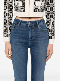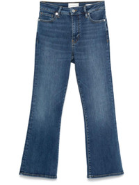 indigo blue organic cotton blend washed denim front button and zip fastening high-waisted belt loops classic five pockets flared leg bootcut This item is made from at least 50% organic materials. Learn more about what makes a product Conscious on our Conscious Criteria page Size & Fit Model Measurements: Height: 1.79 m Bust/Chest: 84.0 cm Hips: 94.0 cm Waist: 64.0 cm Model wears size 26 Fabric and Care Designer Style ID: LCMB630 Designer Colour: MRMD BLUE Composition: Elastane 5%, Recycled polyester 5%, Organic cotton 63%, Cotton 27% Washing instructions: Machine Wash Made in Turkey
