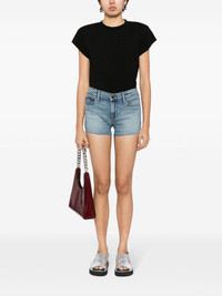 Le Cut-Off denim shorts Highlights - Blue - Cotton blend - Denim - High waist - Belt loops - Concealed fly and button fastening - Classic five pockets - Raw-cut hem Imported Composition Cotton 77%, Lyocell 22%, Spandex/Elastane 1% SIZE & FIT Model measurements Height 5 ft 10 in(1.77 m) Bust/Chest 31.49 in(80 cm) Hips 35.43 in(90 cm) Waist 25.19 in(64 cm) FittingInformation Designed for a slim fit that sits just away from the body offering a close yet comfortable fit Made from a midweight stretch fabric, this piece offers elasticity and flexibility when worn This piece fits true to size – take your usual size Washing instructions Machine Wash